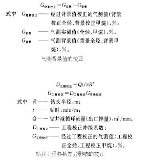 1、扣除高背景值影响后的气测全烃和甲烷称为背景校正全烃和背景校正甲烷, 计算公式如图中最上面的公式所示。